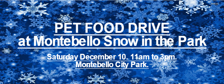 The pet food drive is happening at the City of Montebello Snow in the Park happening Saturday December 10 from 11am to 3pm at Montebello City Park located at 1301 W Whittier Blvd, Montebello, CA 90640. We will have a booth at the event. You can drop of your donation and then enjoy the festivities. They will have jumpers, face painting, games, pictures with santa, live bands, ugly sweater contest, raffle prizes, food vendors, and craft vendors, and us.